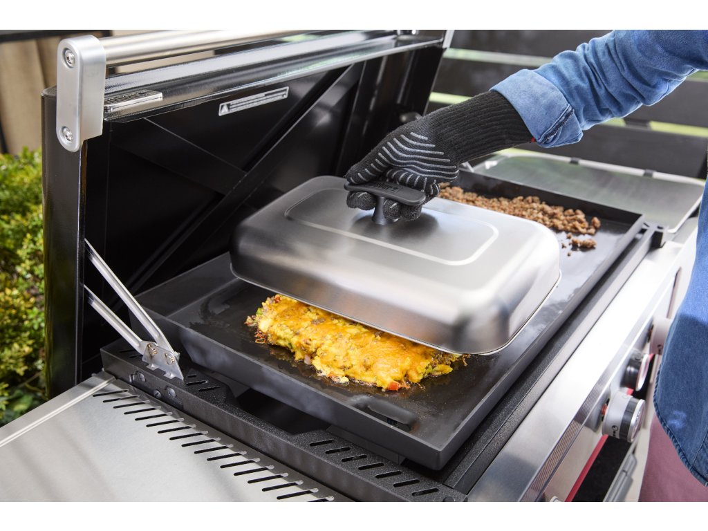 Zrychlete přípravu pokrmů a dosáhněte ještě lepší chuti s extra velkou grilovací poklicí Weber XL. Zakryje větší plochu planchy nebo grilu, a umožní tak efektivní grilování, dušení nebo rozpékání i u větších porcí.
