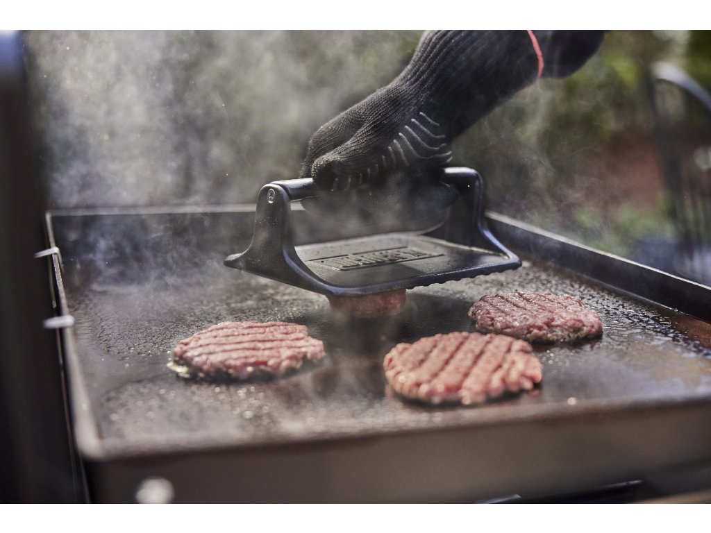 Zvyšte úroveň svého grilování s litinovým lisem Weber, ideálním nástrojem pro přípravu smash burgerů, panini, quesadillas nebo křupavé slaniny. Tento lis ocení i milovníci vegetariánské kuchyně – perfektně zpracuje například houby, které díky tlaku získají krásně zlatavou a křupavou strukturu.