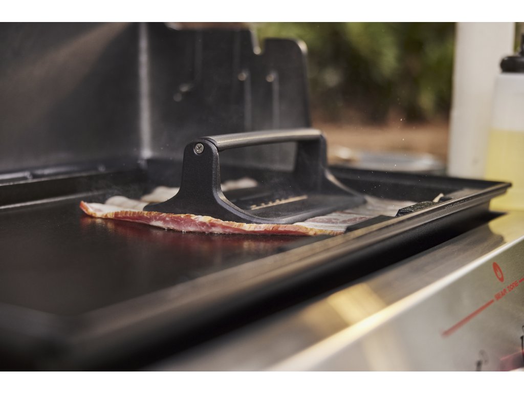 Použití je jednoduché – lis stačí položit na jídlo na rozžhavené planche a nechat pracovat. Pro rovnou slaninu nebo burger jako z food trucku ideální. A protože se litina velmi rozpaluje, nezapomeňte na grilovací rukavice!