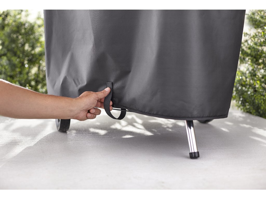 Obal pevně drží na svém místě díky praktickým upínacím popruhům, které zabrání jeho odfouknutí větrem. Váš gril tak zůstane chráněný i v náročných podmínkách – od silného deště až po sněhovou přikrývku.