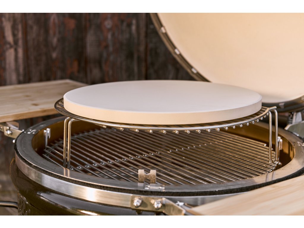 Kámen je vhodný nejen na přípravu pizzy, ale také na něm můžete péct chleba nebo i sladké či slané koláče. Kámen je vyroben z keramického kordieritu, díky kterému absorbuje vlhkost z těsta a zajistí křupavý základ. Doporučujeme používat v kombinaci s deflektorem.