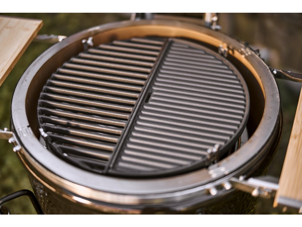 SGS litinová plancha pro Monolith Classic je nepostradatelným doplňkem pro milovníky grilování ryb, zeleniny a dalších pokrmů, které vyžadují rovnoměrné rozložení tepla. Stejně jako ostatní příslušenství pro Smart Grid System (SGS) pokrývá polovinu grilovací plochy a lze ji kombinovat s litinovým nebo nerezovým roštem, litinovým hrncem či jinými doplňky. Díky své hladké ploše je ideální pro přípravu jemných surovin, které by mohly propadnout klasickým roštem. Využijte maximálně flexibilitu Vašeho grilu a posuňte své grilování na novou úroveň.