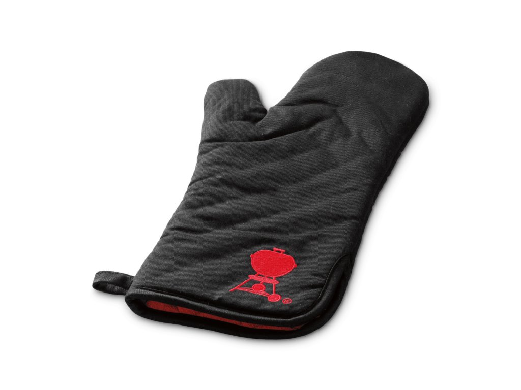 Rukavice je vyrobena z kvalitních materiálů, které zajišťují odolnost vůči vysokým teplotám, a díky praktickému poutku ji snadno pověsíte přímo na gril.