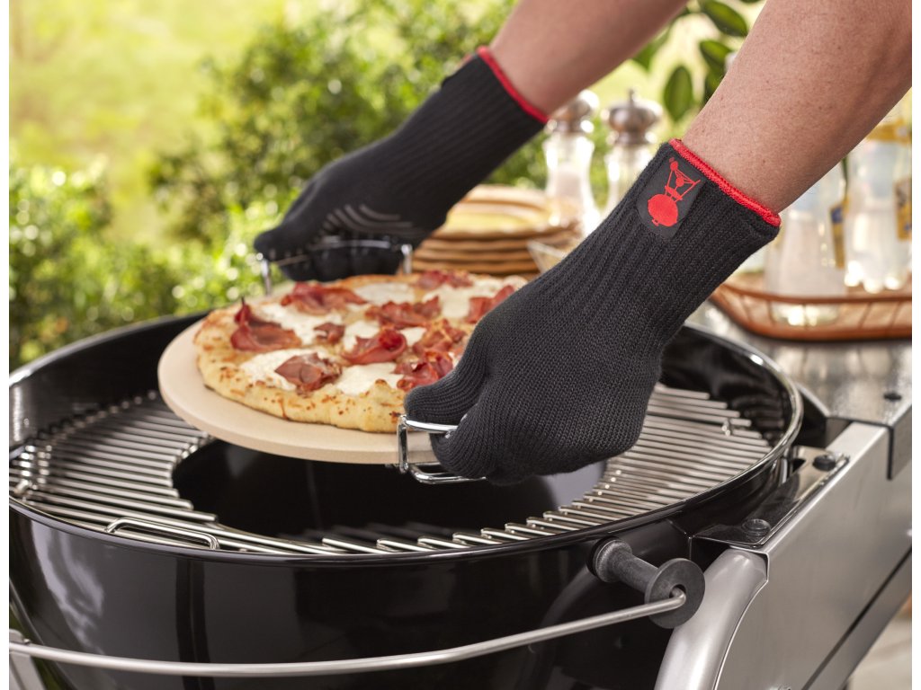 Flexibilní, žáruvzdorný materiál pro snadnou manipulaci s grilovacím náčiním a poklopem grilu.