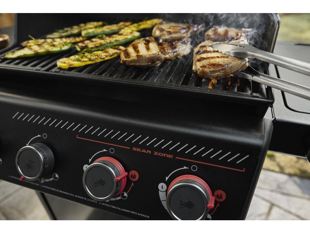 Elegantní Stealth design laděný v matné černé vytváří dojem prémiového grilu, zatímco čtyři výkonné hořáky s integrovanou Sear Zone poskytují až o 40 % silnější výkon pro intenzivní žár – ideální pro perfektní opečení steaků, burgerů i zeleniny.