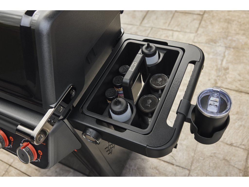 - Postranní stolek Weber Works je vhodný pro vkládací (Drop-in) i nacvakávací (Snap-On) vložky (prodává se samostatně)