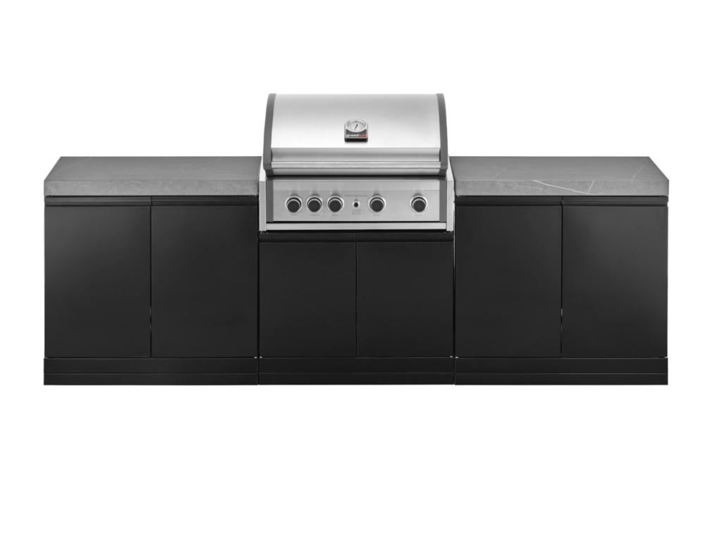 Tato venkovní kuchyně představuje luxusní řešení pro náročné milovníky grilování, kteří hledají široké a výkonné řešení s možností budoucího rozšíření. Modulový systém zaručuje, že si vytvoříte kuchyni přesně podle svých potřeb.