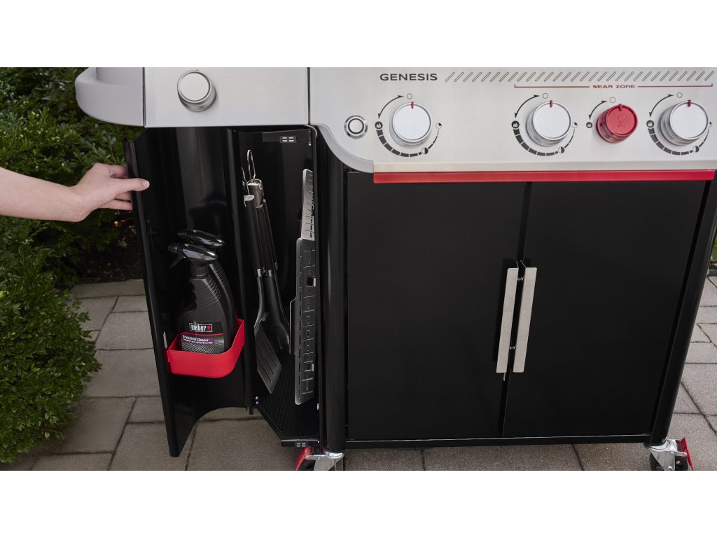 Prémiový plynový gril Weber Genesis EP-335 W přináší dokonalou kombinaci špičkového výkonu a promyšlené funkčnosti. Tři výkonné hořáky, doplněné o speciální hořák Sear Burner, vytvářejí intenzivní teplotní zónu pro perfektní zatažení masa. Kromě hlavní grilovací plochy o rozměru 68 × 48 cm nabízí i rozšiřitelný ohřívací rošt, který lze využít jako druhou grilovací úroveň.
