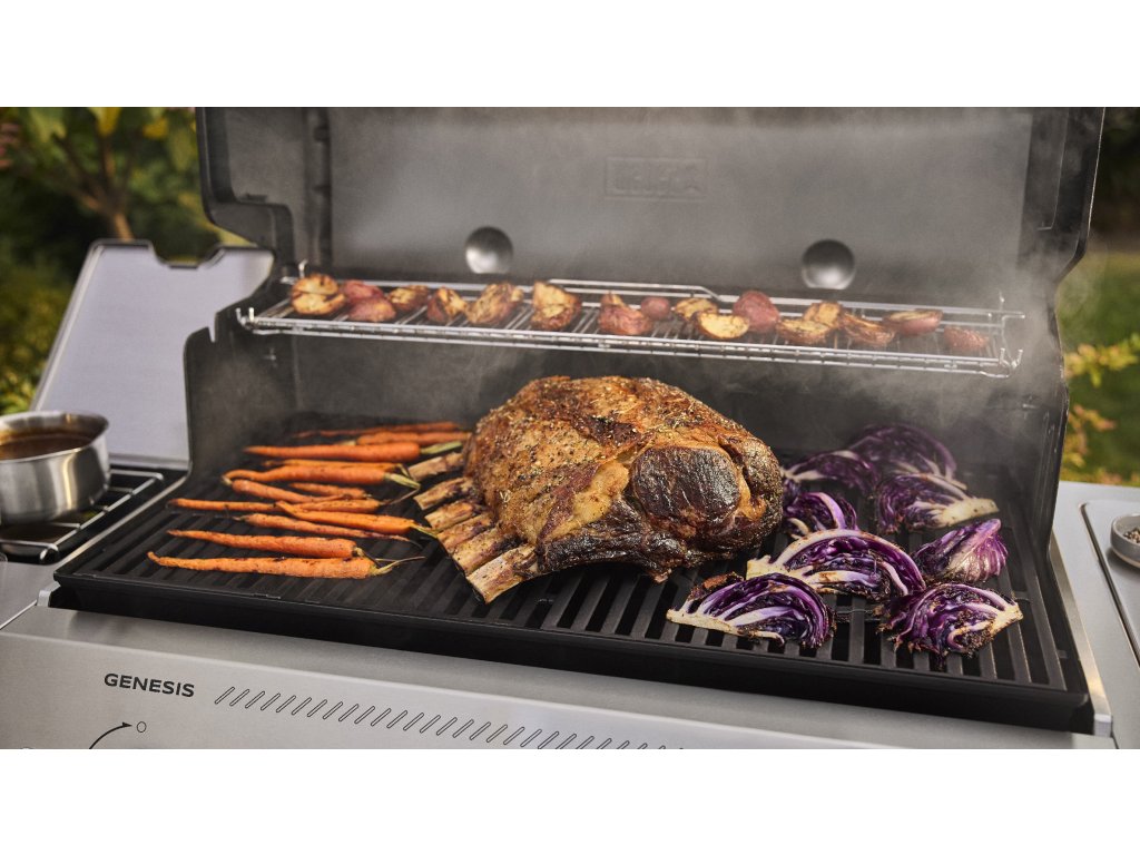 Grilovací plocha o rozměru 86 × 48 cm s rošty Weber Crafted Gourmet BBQ System z porcelánem smaltované litiny poskytuje prostor pro různé grilovací techniky - stačí doplnit volitelné příslušenství jako pánev, kámen na pizzu nebo stojan na drůbež. Aromakolejnice Flavorizer Bars z nerezové oceli zvýrazňují chuť jídla odpařováním šťáv a tuků.