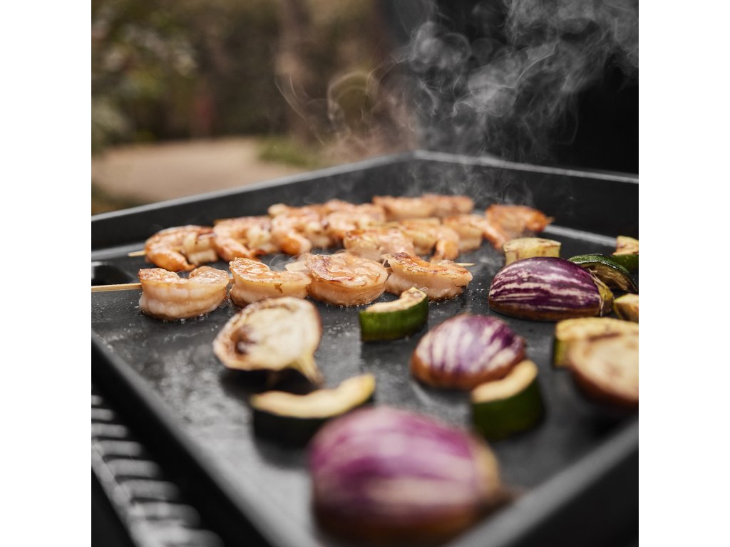 Přenosný plynový gril s planchou po celé grilovací ploše je ideální pro přípravu rozmanitých pokrmů při vysokých teplotách a s dokonale rovnoměrným rozložením tepla. Dosahuje teplot přes 260 °C, takže snadno vytvoříte lahodně křupavou kůrčičku na mase, zelenině či mořských plodech.