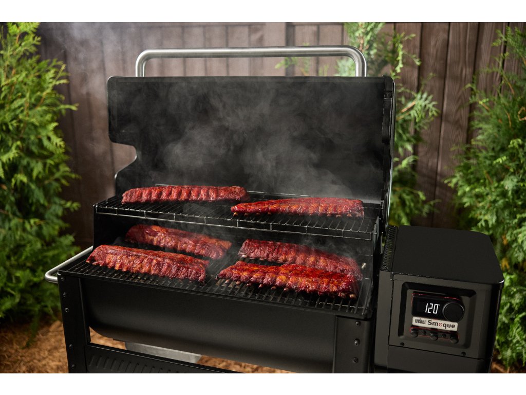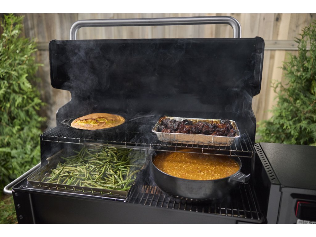 Díky širokému teplotnímu rozsahu od 80 °C do 260 °C snadno přejdete z pomalého uzení na intenzivní restování nebo pečení. Ať už toužíte po šťavnatých žebrech, bůčku, trhaném mase nebo zapečených přílohách a kuřeti se zlatavou kůrkou, Weber Smoque si poradí se vším.