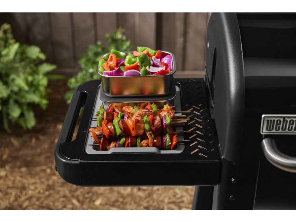 Volitelný postranní stolek Weber Works (prodává se samostatně) rozšiřuje pracovní plochu a usnadňuje přípravu. Grilovací plocha 86 x 45 cm poskytuje dostatek místa pro rodinné večeře i zahradní párty.