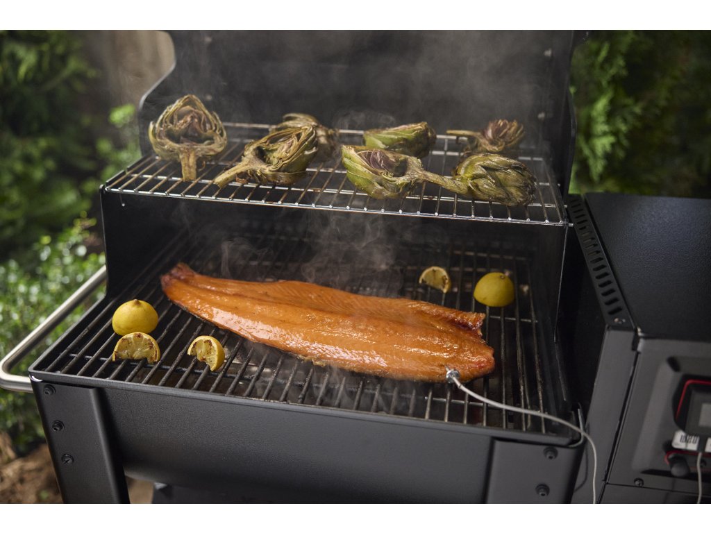 Díky širokému teplotnímu rozsahu od 80 °C do 260 °C snadno přejdete z pomalého uzení na intenzivní restování nebo pečení. Ať už toužíte po šťavnatých žebrech, bůčku, trhaném mase nebo zapečených přílohách a kuřeti se zlatavou kůrkou, Weber Smoque si poradí se vším.