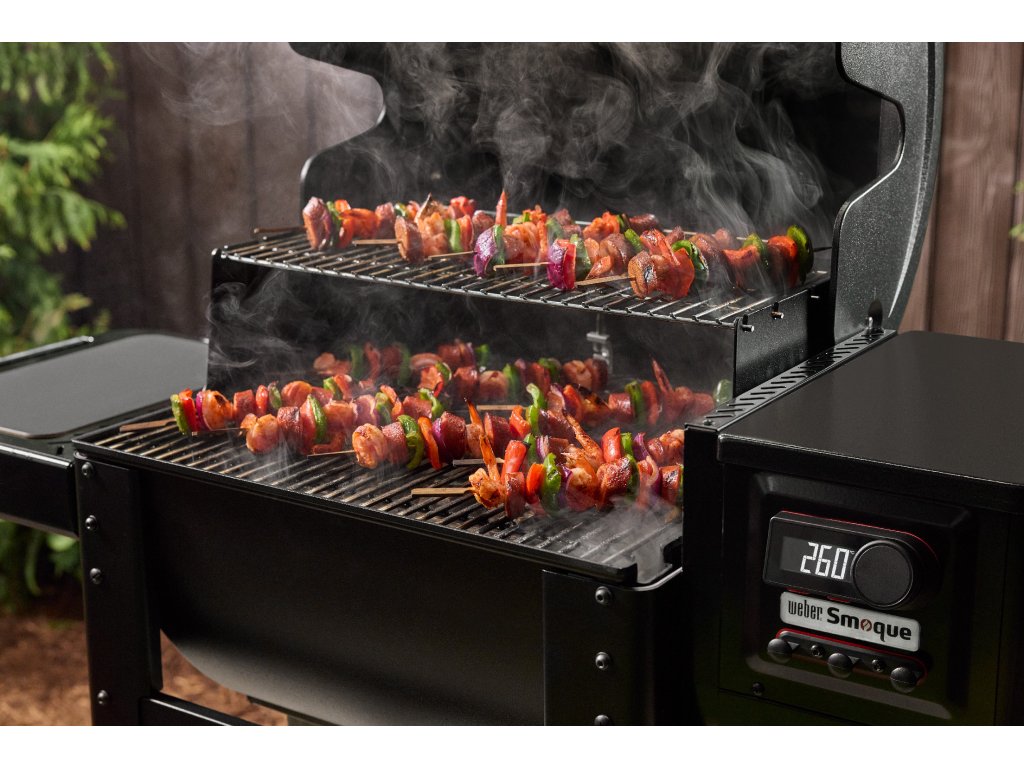 Vychutnejte si zábavu a opravdovou chuť dřeva s peletovým grilem Weber Smoque – spojením moderní technologie a tradičního kouře. Objevte grilování nové úrovně s funkcí SmokeBoost, která udržuje ideální teplotu pro maximální absorpci kouře, a systémem SmoqueVent, který rovnoměrně cirkuluje kouř kolem pokrmů. Výsledkem je hluboká chuť a perfektně propečené maso.