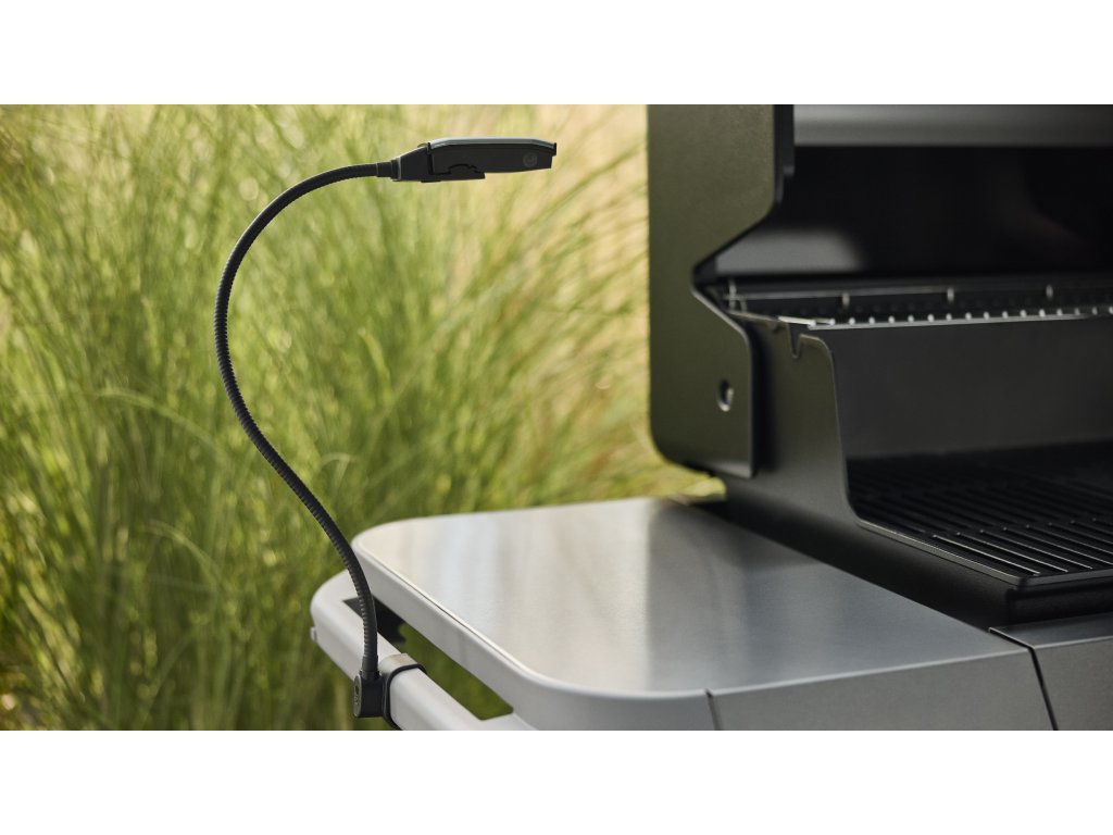 Mějte dokonalý přehled nad grilem i po západu slunce. Flexibilní LED světlo Weber Works Snap-On se jednoduše nacvakne na boční madlo stolku grilu kompatibilního se systémem Weber Works a okamžitě osvětlí celou pracovní plochu. Díky ohebnému stojanu si snadno nastavíte směr světla přesně podle potřeby.