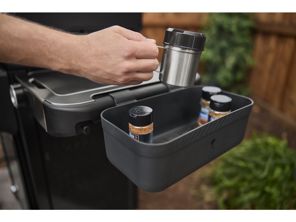 Tento držák jednoduše nacvaknete z boku na postranní stolek kompatibilních grilů Weber – například u modelových řad Genesis nebo Spirit. Díky pevnému uchycení zůstane obsah bezpečně na svém místě, i když zrovna pracujete s větším nadšením. Už žádné převržené dózy ani nepořádek!
